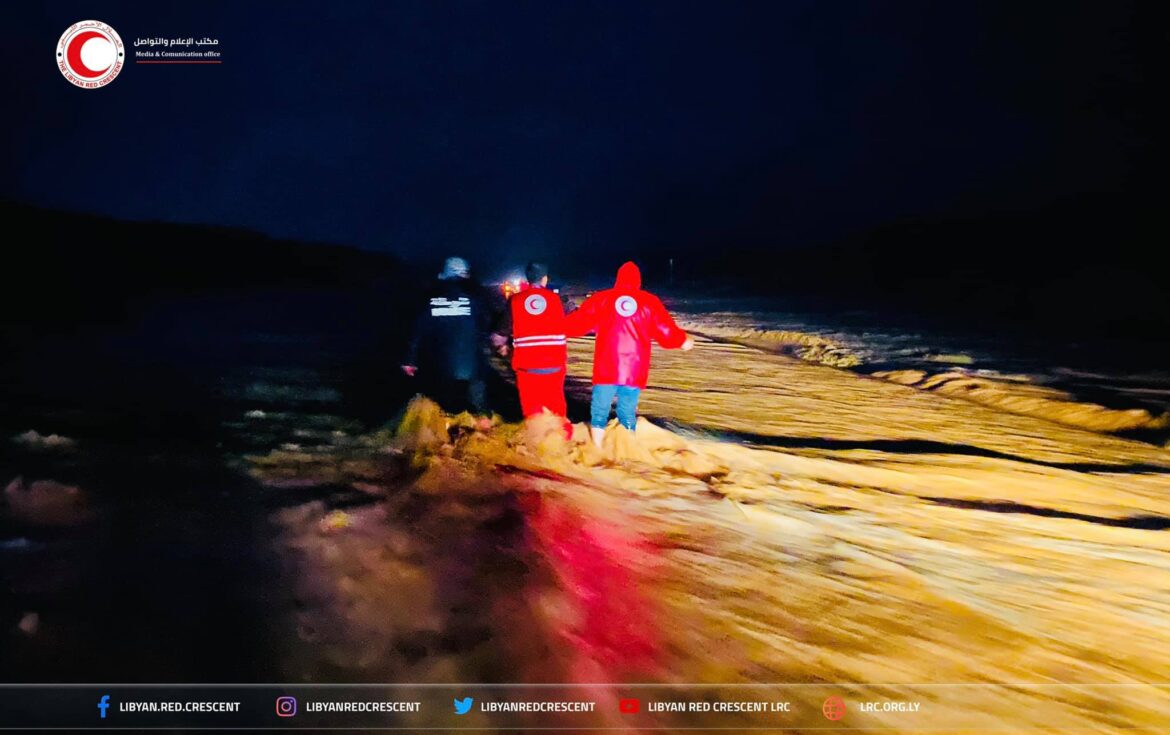 وقبل يوم أغلق متطوعون من جمعية الهلال الأحمر فرع بني وليد، طريق وادي دينار الواقع شمال المدينة أمام حركة السير في الاتجاهين بعد انهيار جزء كبير من الطريق جراء السيول الغزيرة.