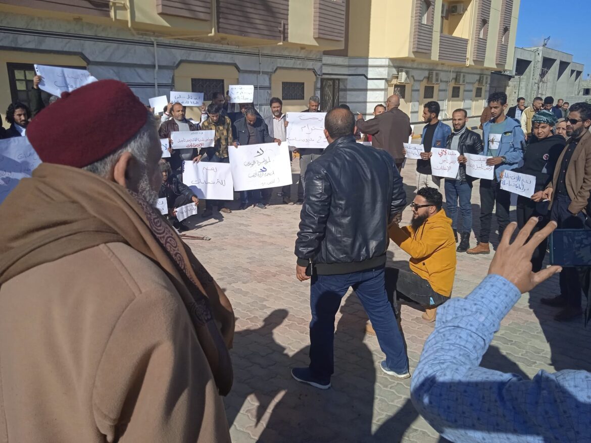 نظم عدد من المواطنين وقفة احتجاجية أمام مقر مجلس النواب في مدينة طبرق، الإثنين، للمطالبة بإجراء الانتخابات وفق جدول زمني ينتهي في مارس المقبل.