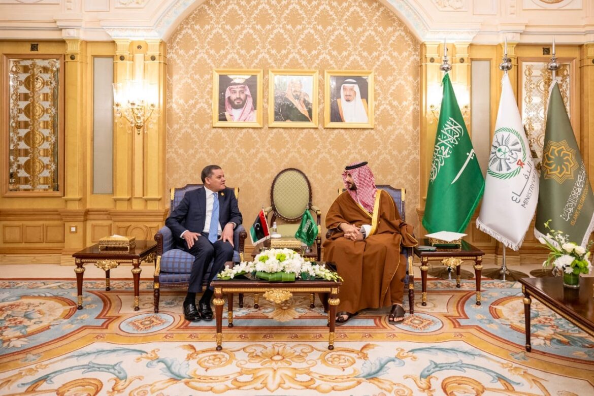 بحث رئيس الوزراء وزير الدفاع عبدالحميد الدبيبة مع وزير الدفاع السعودي الأمير خالد بن سلمان بن عبد العزيز التعاون بين البلدين في المجال العسكري والتدريب ومكافحة الإرهاب.