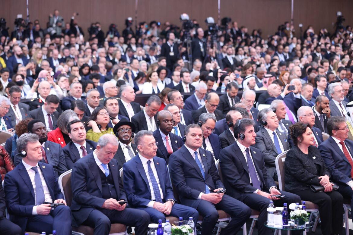 وافتتح وزير الخارجية التركي، هاكان فيدان، أعمال المنتدى بالترحيب بالوفود المشاركة من كل أنحاء العالم، بينما قال إردوغان في كلمته إن حجم المأساة التي يعيشها قطاع غزة أثبتت فشل الدبلوماسية في العالم، معتبرا ذلك داعيا لأن تكون الدبلوماسية حاضرة باعتبارها الحل لكل مشاكل العالم، بناء على منصة حكومتنا.