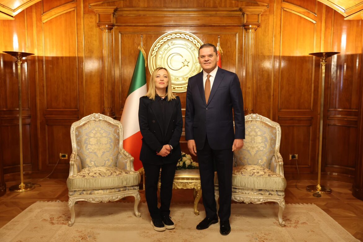 بحث رئيس الوزراء عبدالحميد الدبيبة مع رئيسة الوزراء الإيطالية جورجا ميلوني الأربعاء بطرابلس، ضرورة دعم جهود الأمم المتحدة لإجراء الانتخابات الرئاسية والبرلمانية في ليبيا، وفقا لقوانين عادلة، والجهود المبذولة بين البلدين في مكافحة الهجرة غير النظامية.