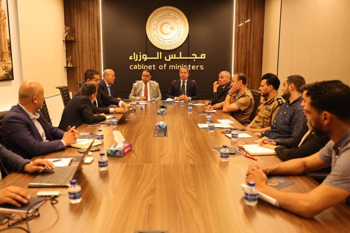 ناقش وزير الدولة لشؤون مجلس الوزراء ووزير العمل والتأهيل، وعدد من المسؤولين من مصلحة الجوازات والجنسية، وجهاز المخابرات، والشركة الليبية للبريد والاتصالات وتقنية المعلومات الإجراءات النهائية لإطلاق منظومة منح إقامات العمل الإلكترونية.